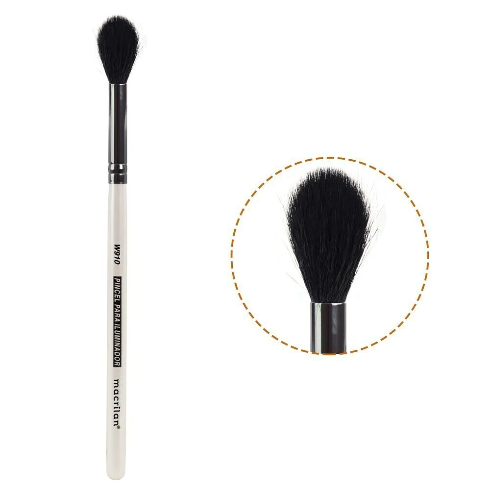 Buscando referências internacionais, a marca Macrilan desenvolveu o Pincel W910 para Iluminador Profissional Linha W – Macrilan ideal para aplicação de iluminador em pó sobre as têmporas, maçãs, nariz e queixo. Especificações Técnicas: - Tamanho: 18,5 cm. - Cor: Branco. - Cerdas: Naturais. - Composição: Madeira, Metal e Cerdas Naturais.